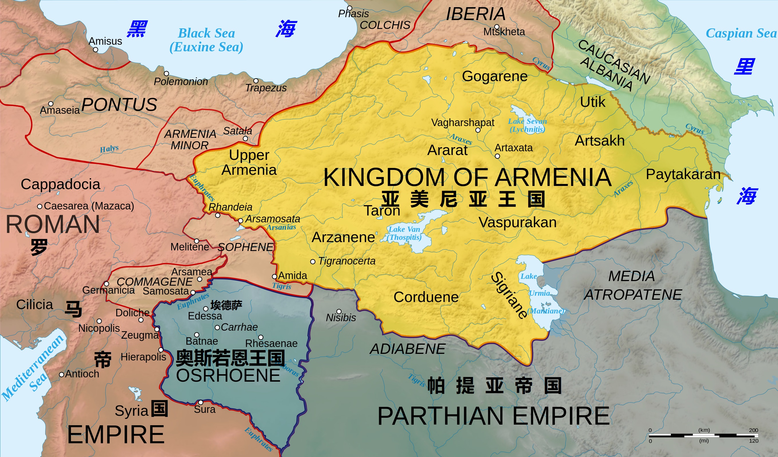 上图:历史上的第一个基督教国家亚美尼亚。主后301年,亚美尼亚国王梯里达底三世(Tiridates III of Armenia,主后250-330年)由被他关押了十三年的启蒙者格列高利(Gregory the Illuminator,主后257-331年)施洗,结束了长期对基督徒的迫害,并将亚美尼亚使徒教会(Armenian Apostolic Church)定为国教。