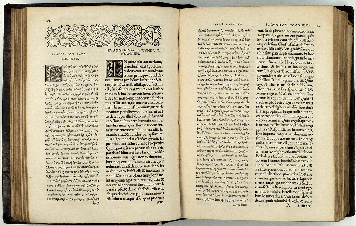 上图:荷兰伊拉斯谟于1516年出版的希腊文新约圣经(带拉丁文翻译)。