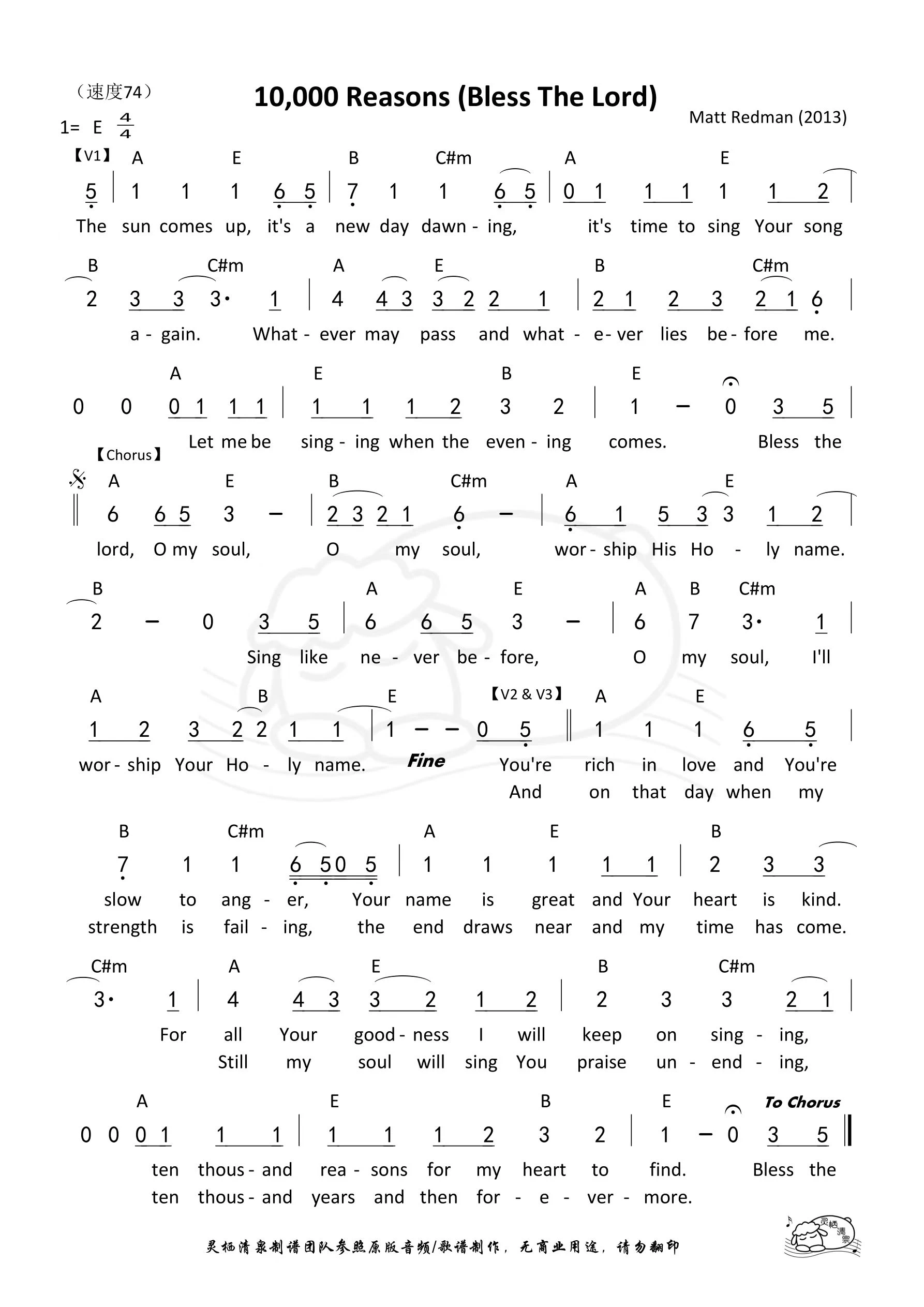歌曲:《10,000 Reasons (Bless the Lord)》